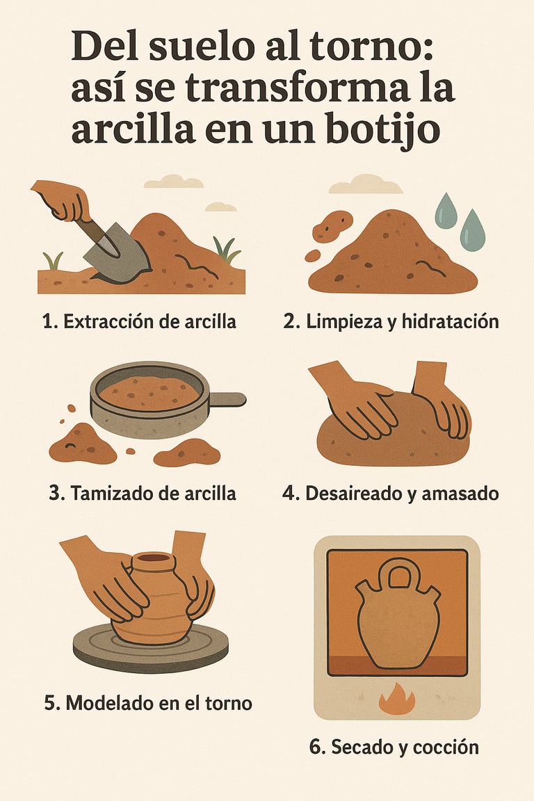 La historia de un botijo empieza mucho antes del torno, del pitorro o del horno. Su origen está bajo nuestros pies: en los depósitos de arcilla que los alfareros trabajan desde hace siglos para crear piezas porosas capaces de enfriar el agua sin enchufe.