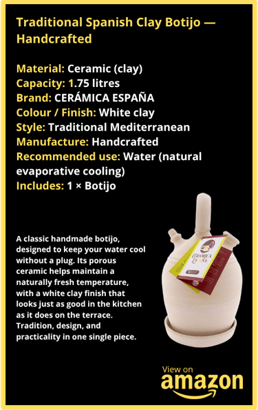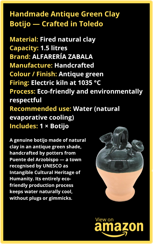 That’s why, for centuries, botijos were the “air conditioners” of shepherds, farmers, and travelers across Spain. Today, they remain a perfect example of natural engineering — efficient, ecological, and timeless.