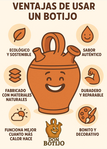Más allá de su encanto tradicional, el botijo es una solución moderna para un problema eterno: cómo mantener el agua fresca sin gastar energía. Estas son algunas de sus principales ventajas:
