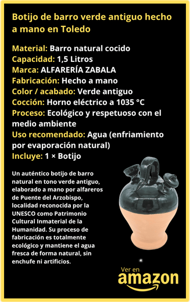Por eso, los botijos fueron durante siglos el “aire acondicionado” de los pastores, campesinos y viajeros de media España. Hoy siguen siendo un ejemplo perfecto de ingeniería natural, eficiente y ecológica.
