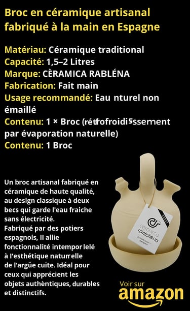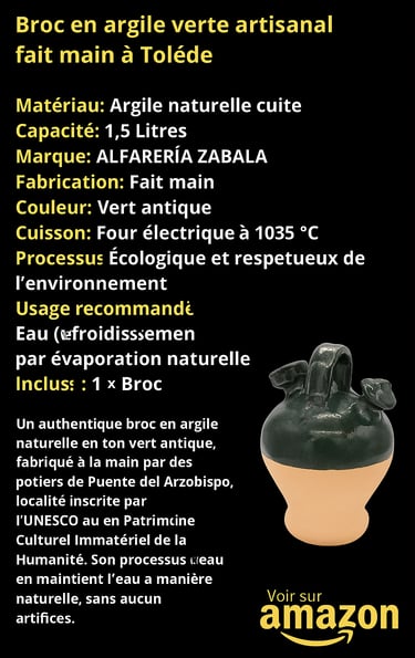 En résumé, le broc d’argile est un réfrigérateur naturel qui ne se contente pas de rafraîchir l’eau : il rafraîchit aussi la mémoire collective.