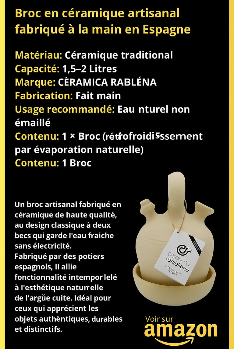 Fait de terre et d’air, sans câbles ni secrets, le broc a survécu aux modes, aux réfrigérateurs et aux générations, prouvant que l’authenticité ne se démode jamais.